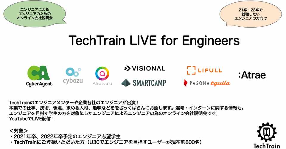 エンジニア向けオンライン企業説明会 Techtrain Live For Engineers 開始 Techbowl Note