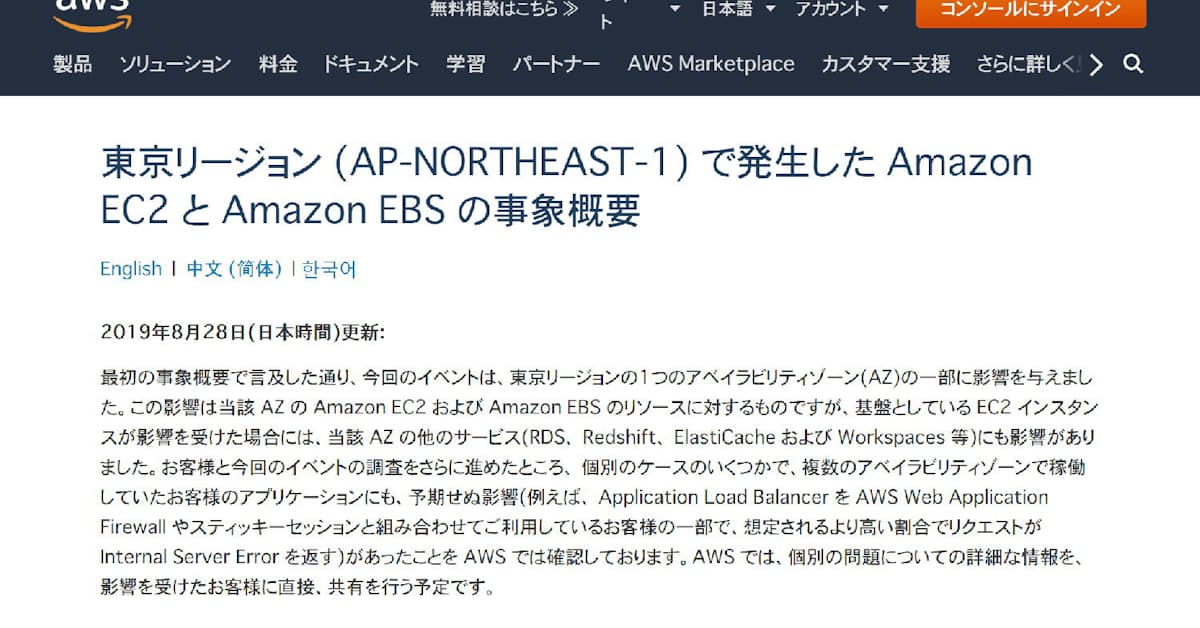 Aws大規模障害 冗長構成でも障害あったと認める 日本経済新聞